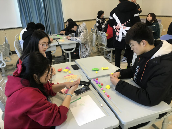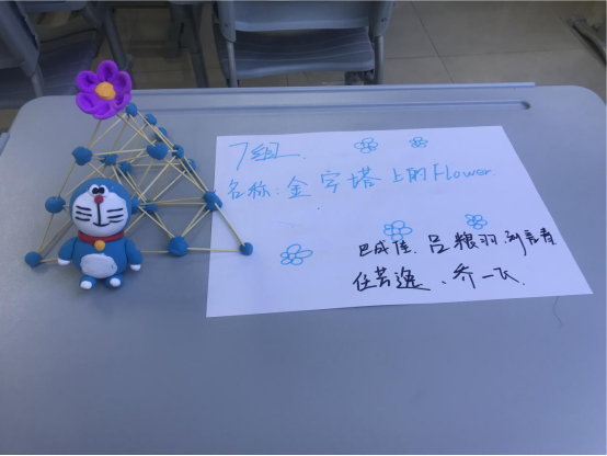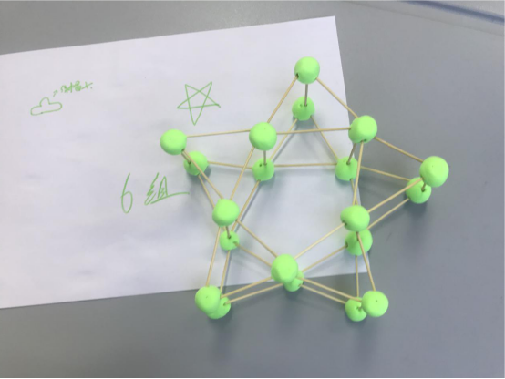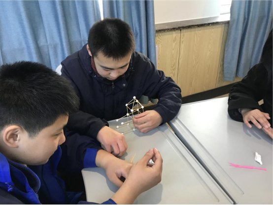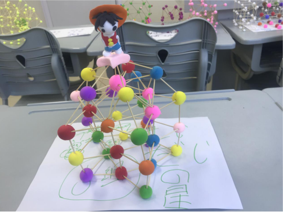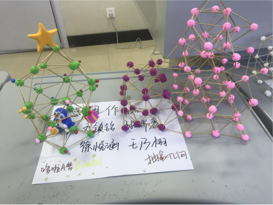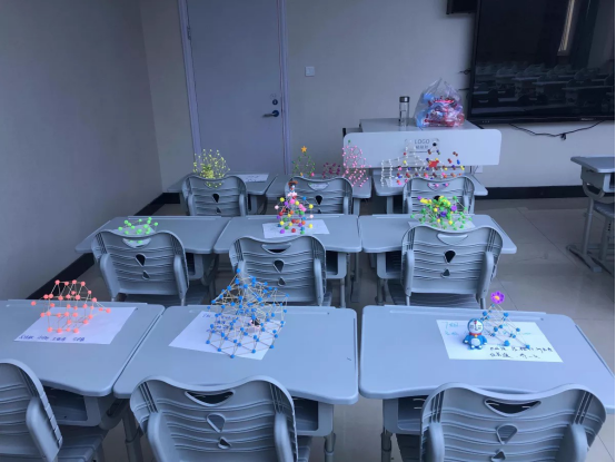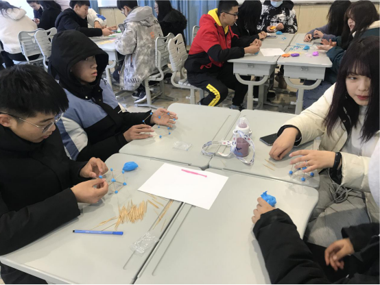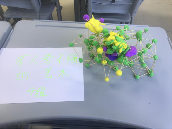 活动中,同学们用粘土将牙签与牙签连接,有的通过将牙签一头连接在同一个点上,做成了有趣的造型;有的将一根牙签连接一块粘土,连成一个稳固的地基……每个人都很专注和认真。