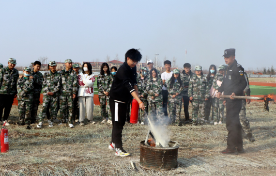 在学校操场,受过专业培训的教官们结合校园人员密集等特点,运用校园火灾实例,向师生们详细讲解了校园防火基本常识、如何正确报警、如何在火场自救逃生等知识。演练中,师生手持消防水带、灭火器等灭火器材进行了灭火演练,近距离了解消防设备。