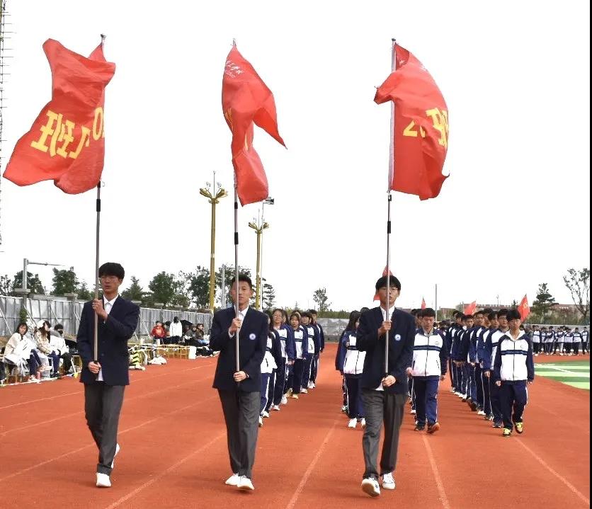 激昂的运动员进行曲在校园环绕,入场仪式正式开始。首先出场的是国旗方队,紧接着是彩旗队和裁判员方队,最后是各班级学生运动员代表方阵入场。