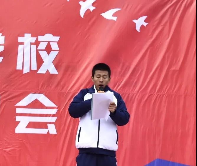 在庄严的升旗仪式结束后,韩立新校长为运动会致开幕词,希望运动员们发扬“友谊第一、比赛第二”的风格,敢于拼搏、勇于进取、赛出风格、赛出水平,为班级争光添彩!