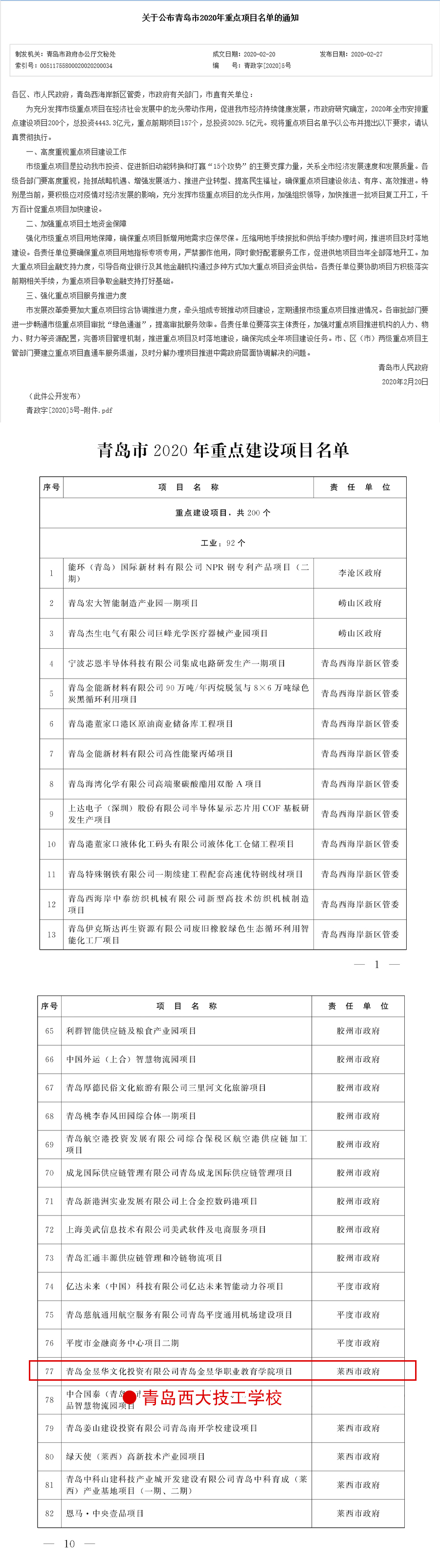 关于公布青岛市2020年重点项目名单的通知(青岛政务网):
